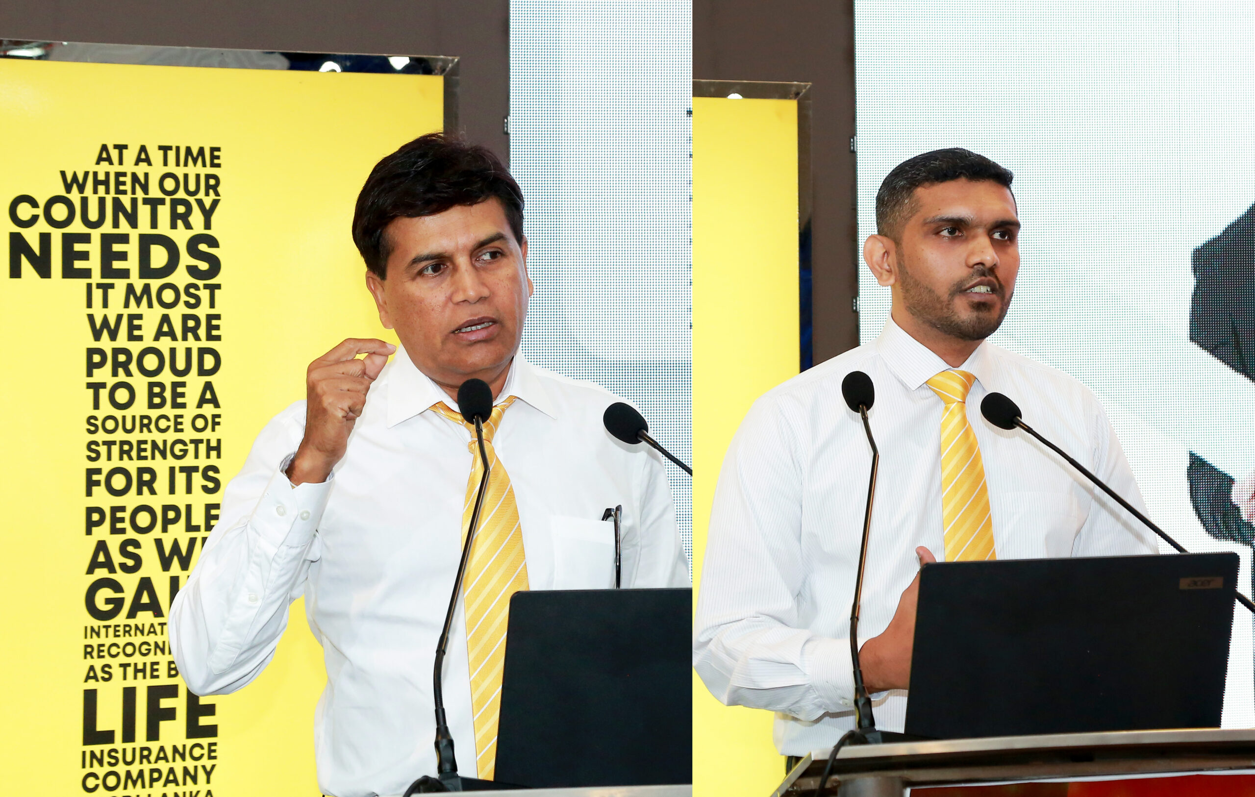 ජනශක්ති ලයිෆ් හී අධ්යක්ෂ/ප්රධාන විධායක නිලධාරී රවී ලියනගේ සහ අලෙවි අංශ ප්රධානී ජූඩ් සිල්වා උත්සවයේදී රැස්ව සිටි පිරිස අමතමින්.