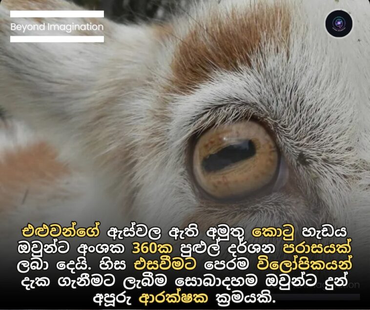 මේ කොටු හැඩය නිසා ඔවුන්ට ඔළුව උස්සන්නේ නැතුවම තමන්ගේ වටේ අංශක 360ක වපසරියක් දකින්න පුළුවන්. පිටිපස්සෙන් සතුරෙක් එනවා නම්, තණකොළ කන ගමන්ම ඔවුන්ට ඒක පේනවා. මේක හරියට ස්වභාවික CCTV කැමරා පද්ධතියක් වගේ.
