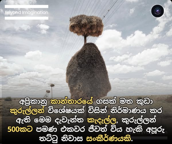 සාමාන්යයෙන් කුරුලු කූඩුවක් කිව්වම අපිට මතක් වෙන්නේ එක කුරුලු පවුලකට ඉන්න හදපු පුංචි කැදැල්ලක්නේ. හැබැයි අප්රිකාවේ කලහාරි (Kalahari) කාන්තාරය වගේ වියළි ප්රදේශවල ජීවත් වෙන “සෝෂබල් වීවර්” (Sociable weaver) කියන කුඩා කුරුලු විශේෂය කූඩු හදන්නේ අපි හිතනවාට වඩා සම්පූර්ණයෙන්ම වෙනස්, පුදුමසහගත විදිහකටයි.