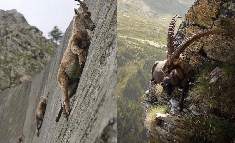 ඉතාලියේ ‘Cingino Dam’ වැනි ඉතාමත් උස වේලි බිත්ති දිගේ මුන් අංශක 90ට නගින දර්ශන ලෝකයම පුදුම කළා. මුන් එහෙම නගින්නේ සෙල්ලමට නෙවෙයි; ඒ ගල් බිත්තිවල තැන්පත් වෙලා තියෙන ලුණු සහ ඛනිජ වර්ග (Minerals) ලෙවකන්නයි. තමන්ගේ සිරුරේ වර්ධනයට අවශ්ය මේ පෝෂණය ලබාගන්න මුන් ඕනෑම මාරක අවදානමක් ගන්නවා.