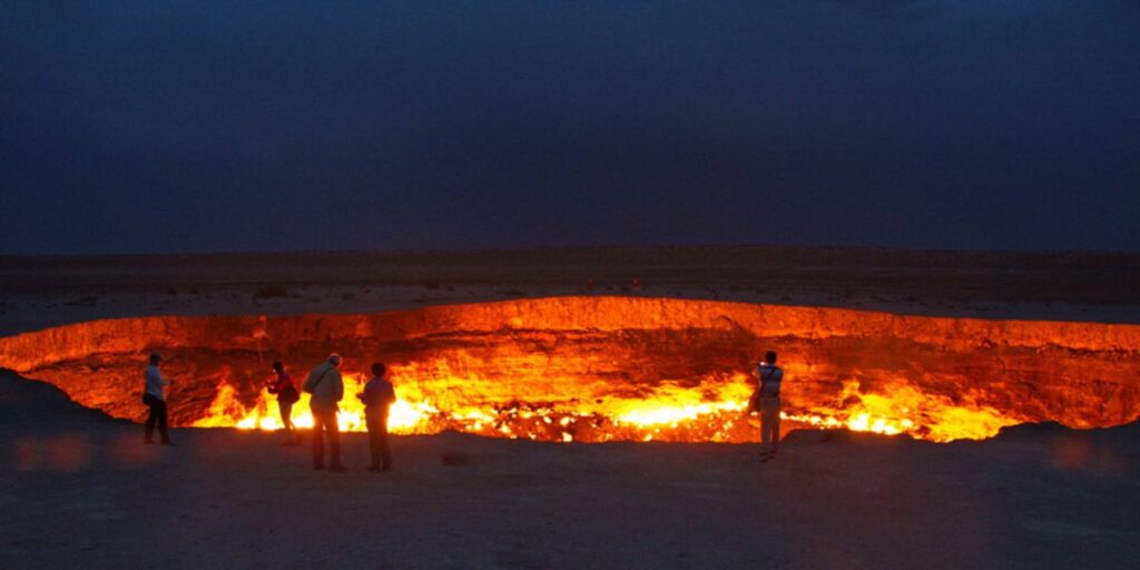 අපි ඔබව අරගෙන යන්නේ ලෝකයේම හරිම අමුතු සහ විස්මිත ස්ථානයකට. ඒ තමයි මධ්යම ආසියාවේ පිහිටි තුර්ක්මෙනිස්තානයේ, කරකුම් කාන්තාරයේ පිහිටා ඇති දාර්වසා ගෑස් ආවාටය (Darvaza Gas Crater). මෙය එහි අඛණ්ඩව දැවෙන ගින්න නිසා “නිරයේ දොරටුව” (Door to Hell) ලෙස හැඳින්වෙනවා. එය ස්වභාවික ආශ්චර්යයක් නොව, මිනිස් ක්රියාකාරකමක් නිසා බිහි වූවක්.