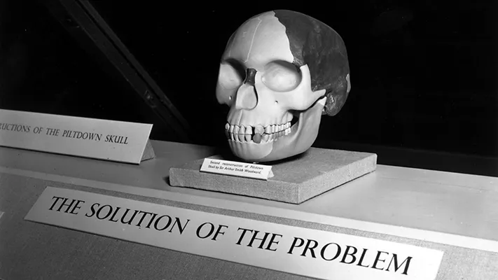මේ අභිරහස විසඳමින් විද්යා ලෝකය කළඹන හෙළිදරව්වක් 1912දී පමණ එංගලන්තයෙන් වාර්තා විය. ජාතික ඉතිහාස කෞතුකාගාරයේ සේවය කළ පාෂාණවේදියෙකු (paleontologist) වූ ස්මිත් වුඩ්වර්ඩ් සහ ආධුනික ඉතිහාසඥයෙකු (antiquarian) වූ චාල්ස් ඩෝසන් විසින් 1912 දෙසැම්බර් මස භූ විද්යා සංගමයට සිය නවතම සොයාගැනීම ඉදිරිපත් කරමින් ප්රකාශ කර සිටියේ, ඩාවින්ගේ පරිණාමවාදයෙහි හිඩැස නොහොත් missing link එක සොයාගන්නට තමන් දෙපළ සමත් වූ බවයි. එංගලන්තයේ සසෙක්ස් ප්රාන්තයේ පිහිටි පිල්ට්ඩවුන් (Piltdown) නම් ප්රදේශයේ සිදුකරන ලද කැනීම් වලින් වානරයින් සහ නූතන මානවයි අතර පරිණාමයේදී ඇති සම්බන්ධය තහවුරු කරන ෆොසිල සාක්ෂි තමන්ට හමුවූ බව මේ දෙපළ විසින් ප්රකාශ කරන ලදී. කාලයක් මුළුල්ලේ පිල්ට්ඩවුන්හි සිදුකරන ලද කැණීම් සහ පර්යේෂණයන්හි ප්රතිඵලයක් ලෙස මිනිසෙකුට සමාන හිස්කබලක්, දත් කිහිපයක් සහිත හනුවක් සහ රදනක හෝ නල දතක් හමුවූ බව ප්රකාශ කළ පර්යේෂකයින් එම ෆොසිලයන් අයිති එකම ජීවියෙකුට බවත්, ෆොසිල අධ්යයනයෙන් එහි නූතන මානව ලක්ෂණ මෙන්ම, ඉපැරණි වානර ලක්ෂණද පැවති බව නිරීක්ෂණය කළ ඔවුන් මේ සැබවින්ම පරිණාමයෙහි එතෙක් කල් නොවිසඳුනු අභිරහස වූ missing link එක බව නිගමනය කොට ප්රකාශ කරන ලදී.