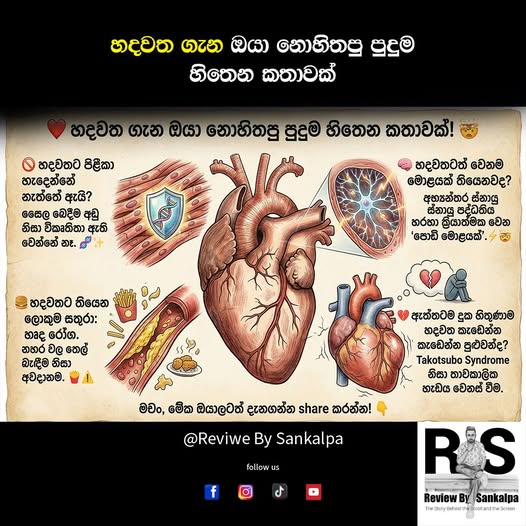 අපි හැමදාම අපේ හදවත ගැන කතා කළාට, මේ දේවල් ඔයා මීට කලින් අහලා තියෙනවද? අද මම කියන්න යන්නේ අපේ පපුව ගැහෙන හදවත ගැන අනිවාර්යයෙන්ම දැනගෙන ඉන්න ඕනේම කතාවක්! ![]()