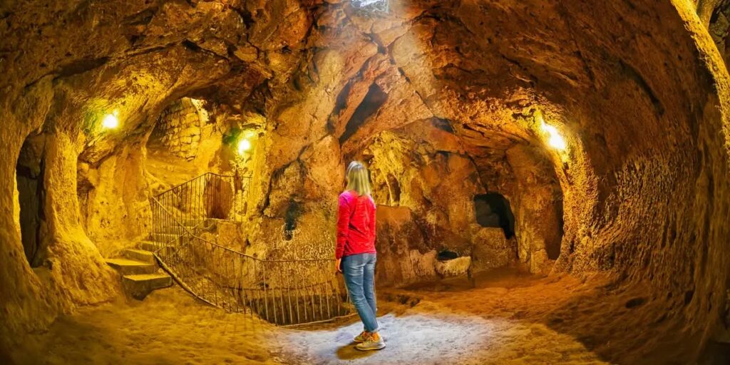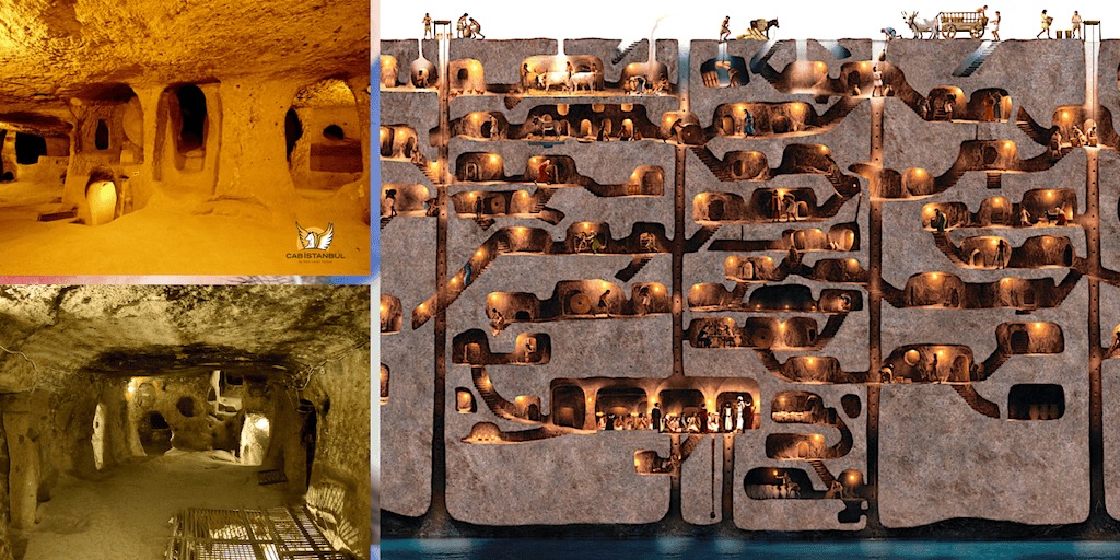 Derinkuyu භූගත නගරය මහල් 18ක් තරම් ගැඹුරට විහිදී යන අතර, එයට පුද්ගලයන් 20,000කට පමණ එකවර ජීවත් විය හැකියි. එහි ඇතුළත, ජීවත් වීමට අවශ්ය සියලු පහසුකම් ඉතා දක්ෂ ලෙස සකස් කර තිබෙනවා.